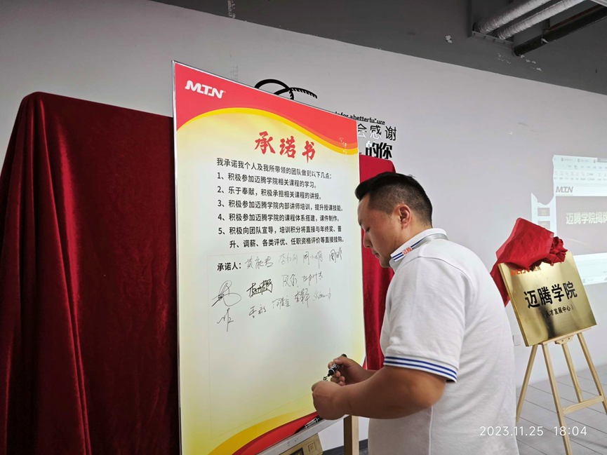 與會人員一起宣誓和簽字承諾,倡導公司上下所有同事,積極參與邁騰的授課、學習、互動等,為邁騰電子的發展全力以赴、用邁騰學院的平臺為自身職業發展賦能。