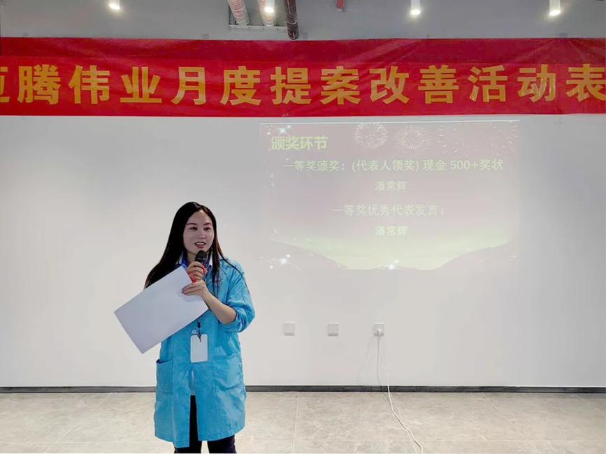 我們還邀請了獲獎員工上臺演講。他們分享了一些關于提案改善實踐經驗,為其他員工們提供了寶貴的啟示和指導,激發了更多的創新思維。