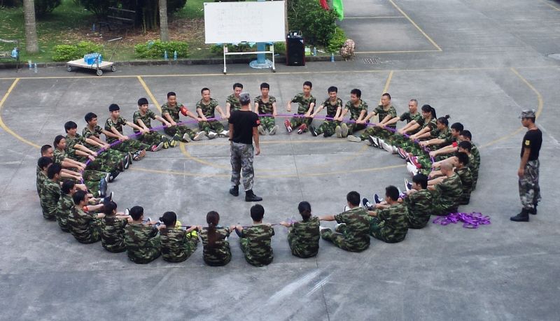 第二天我們迎來了我們的“老朋友”百年特訓(xùn)營的教官,展開短暫的一天拓展培訓(xùn),至此學員之間多了一種關(guān)系,那便是“戰(zhàn)友”!短短的一天拓展培訓(xùn)中,戰(zhàn)友們體驗到了“組建團隊”、“創(chuàng)新贏家”、“共同進退”、“解救人質(zhì)”四項團隊任務(wù),每個任務(wù)都是對戰(zhàn)友間信任度、團隊協(xié)作能力,耐力的挑戰(zhàn),但是一個個任務(wù)下來戰(zhàn)友們都出色的完成了任務(wù)。在“解救人質(zhì)”的任務(wù)中36位戰(zhàn)友挑戰(zhàn)了3500圈的勝利圈,有戰(zhàn)友在結(jié)束后說,“自己真的快不行了,最后都是靠毅力堅持下來的”,有些戰(zhàn)友甚至因此磨破了皮!“一開始就是3500圈,不達到不放手,即使很痛苦但是咬咬牙就是挺過去了,如果失敗了就是個大笑話,不要讓這成為笑話,要讓大家為之崇拜和認可。”有為戰(zhàn)友在分享總結(jié)中這樣說道。