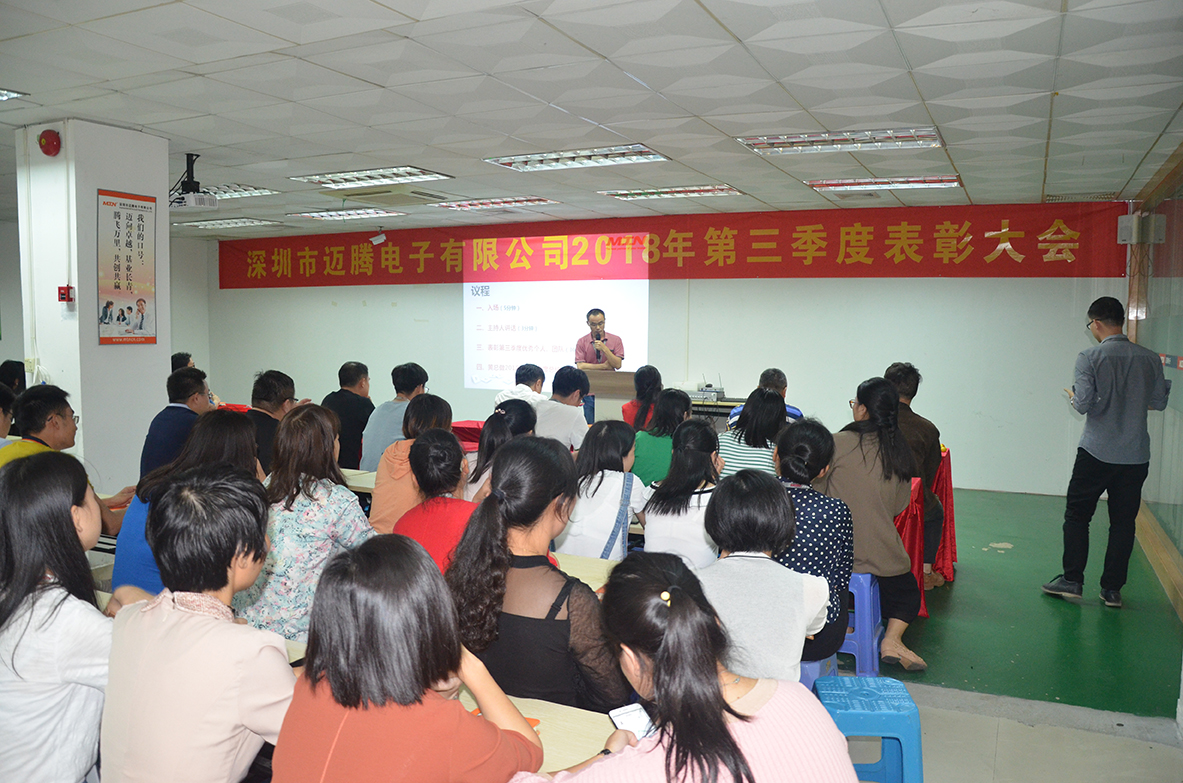 11月14日,邁騰電子2018年第三季度表彰大會(huì)在公司培訓(xùn)室隆重舉行,深圳全體員工參加了此次會(huì)議。本次大會(huì)簡(jiǎn)要總結(jié)第三季度工作,并對(duì)優(yōu)秀團(tuán)隊(duì)進(jìn)行表彰,同時(shí)強(qiáng)調(diào)第四季度工作重點(diǎn)。