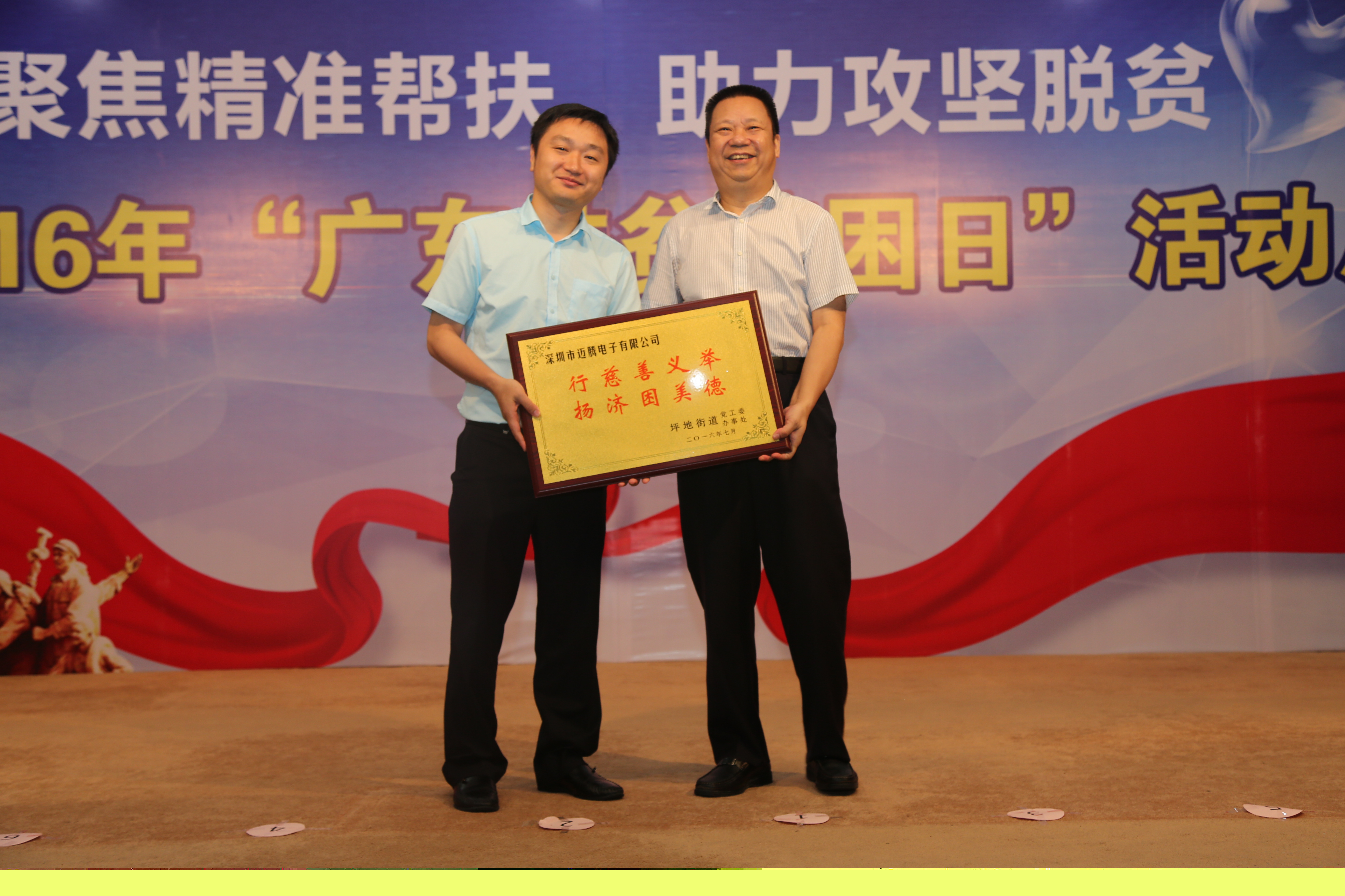 邁騰電子積極參與坪地街道扶貧開發“雙到”幫扶工作籌集資金活動。此次活動公司總經理黃能君先生代表邁騰捐贈善款80000元人名幣,坪地街道黨工委書記鐘春平代表坪地街道現場接受捐贈支票,并為我司頒發榮譽牌匾。邁騰用實際行動展現了坪地企業良好的社會責任感和傾情奉獻的大愛情懷。