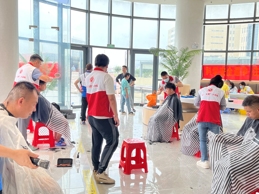 義剪區域,理發師一把剪刀、一把推子、一把梳子、一個圍布,工具雖簡單,但真情服務卻讓人暖在心里。為廣大員工解決“頭”等大事。